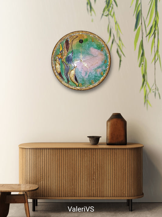 Exclusive, luxury, handmade wall clock with natural stones and crystals