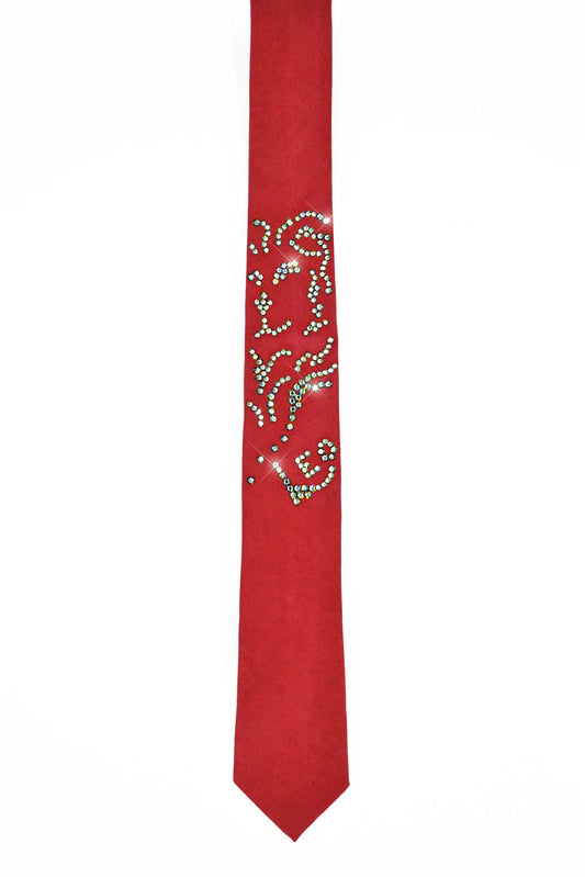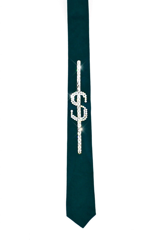 Green slim-fit suede wedding necktie with Swarovski crystals