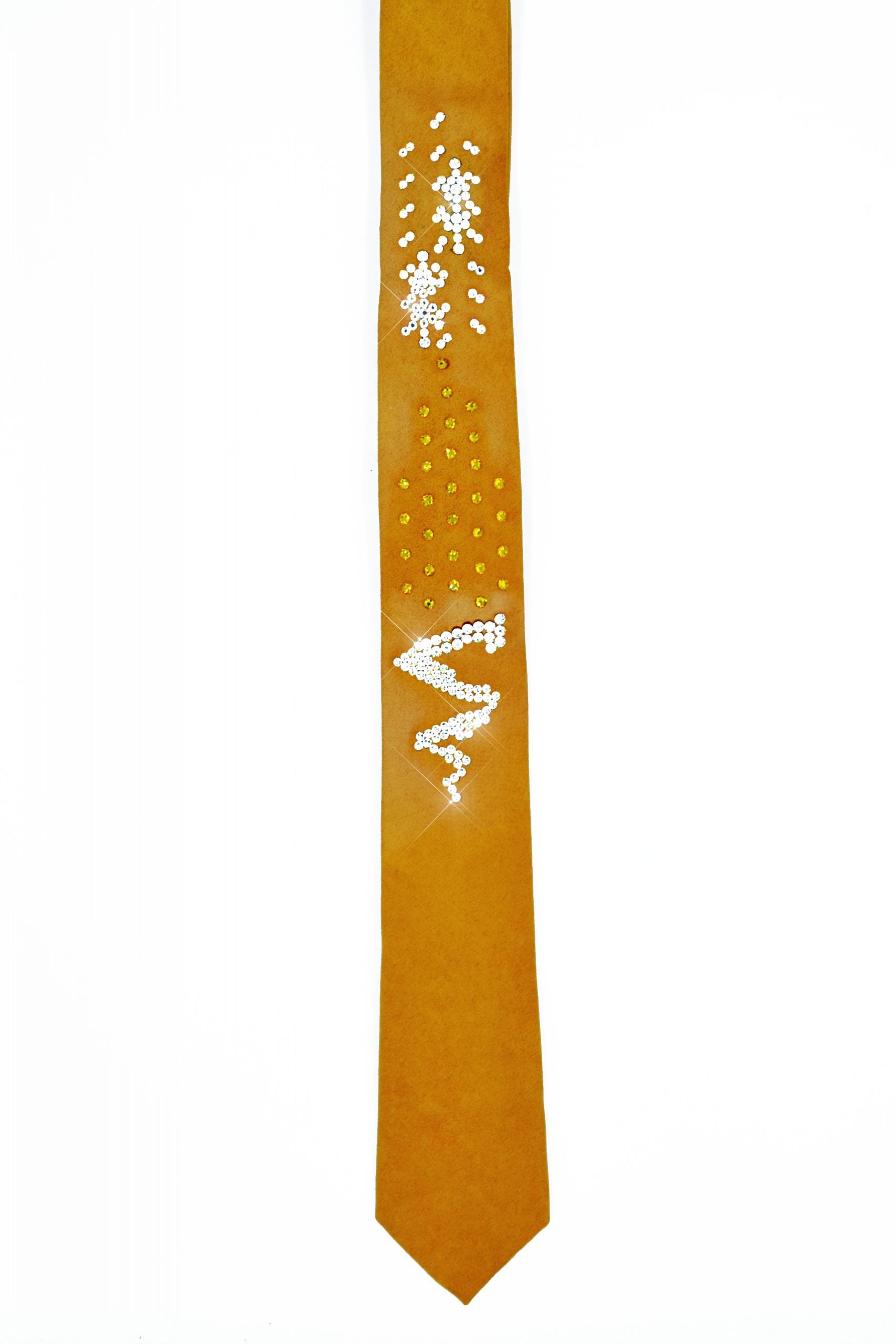 Gorgeous slim-fit, soft suede, one of a kind fashionable tie "Gold Dragon"