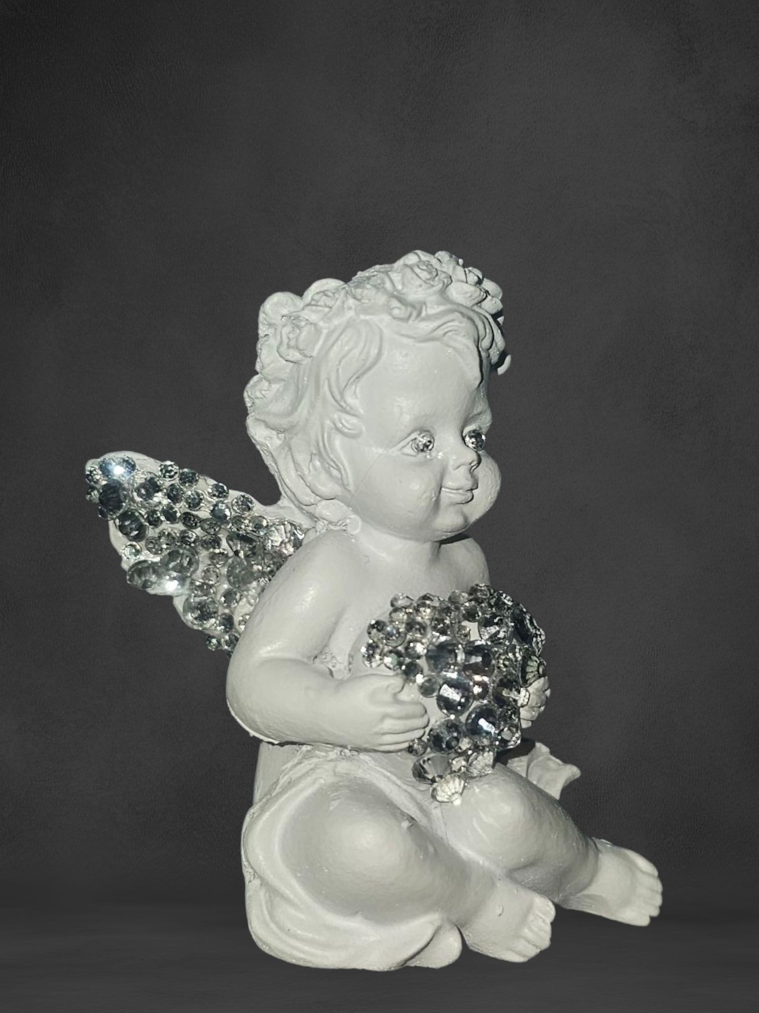 Guardian angel statue with sparkling rhinestones.