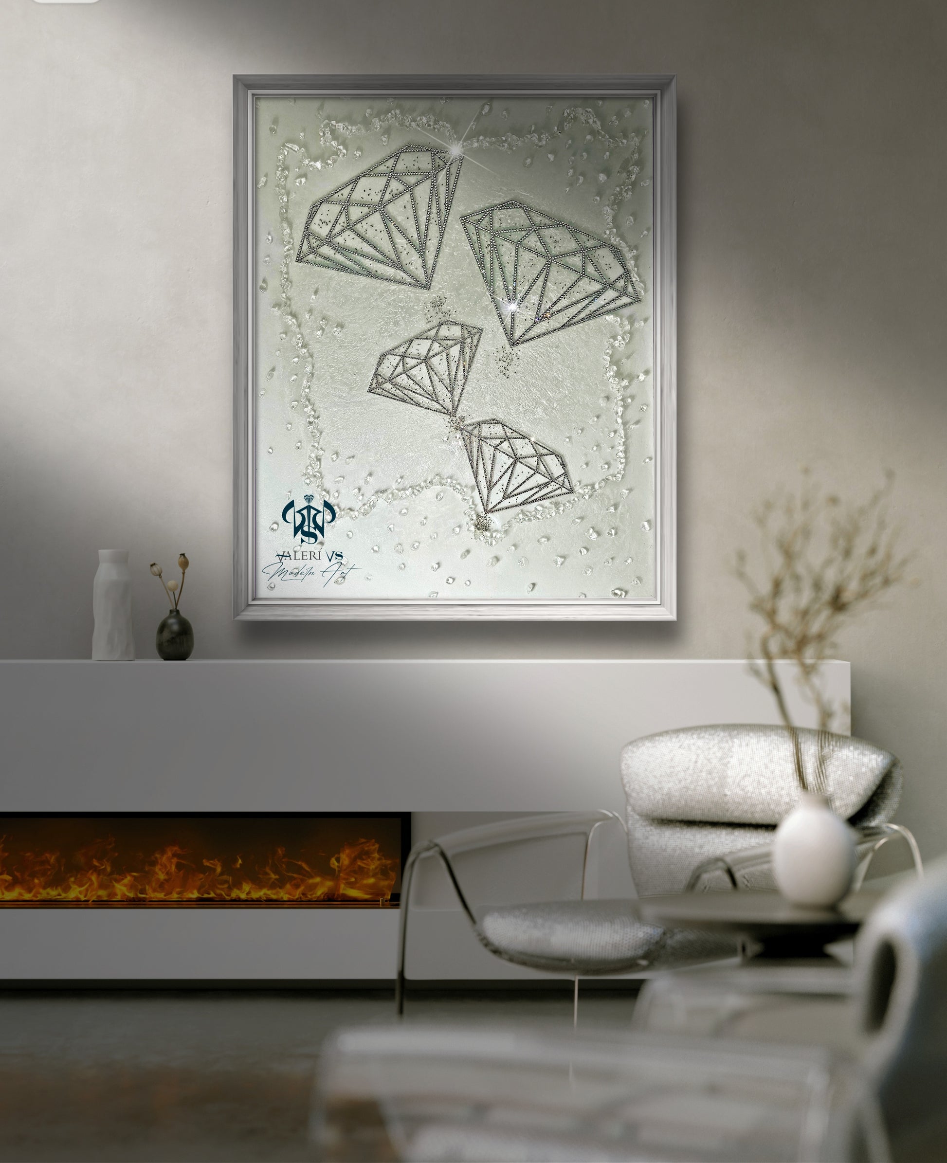 Made with acrylic mirrors, natural healing stones and incrustated with sparkling rhinestones.