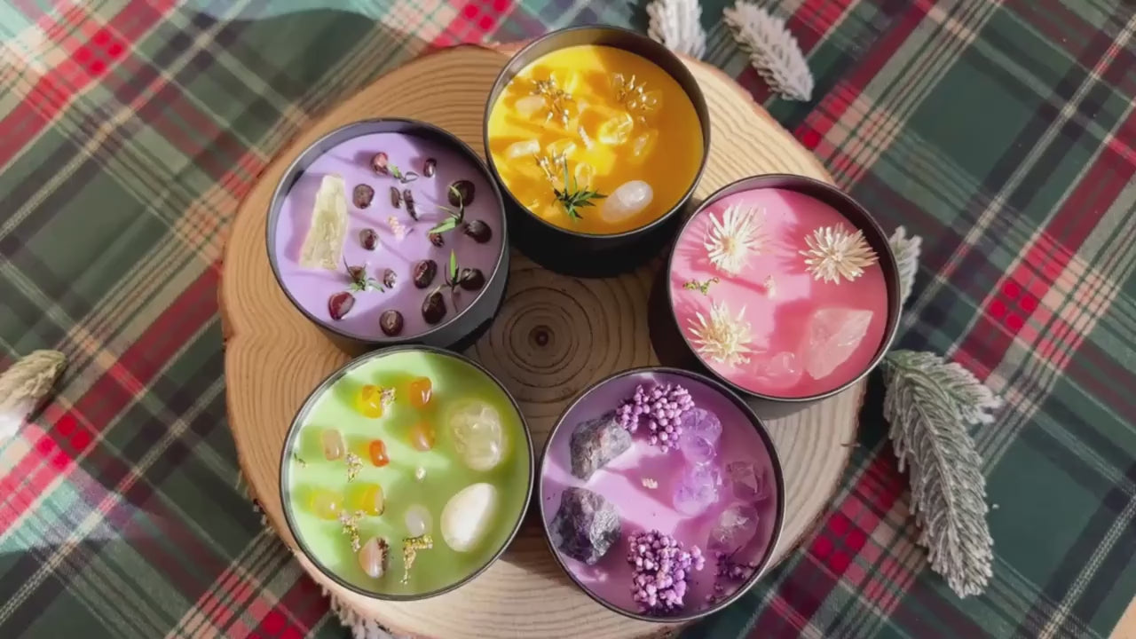 Manifestation candles that will help boost your energy with natural crystals and make your wish come true.