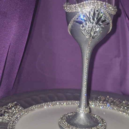 Each glass is hand-painted with food-safe, non-toxic paint and adorned with brilliant rhinestones, creating a captivating shimmer that catches every light and toast.