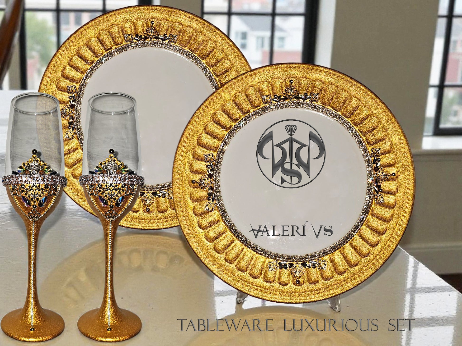 Each piece is lovingly painted with food-safe, non-toxic paints and adorned with hand-placed rhinestones, creating a radiant sparkle that catches every light. Designed for weddings, anniversaries, parties, or elegant dining at home, this set brings a perfect balance of luxury, safety, and personalization to your table.